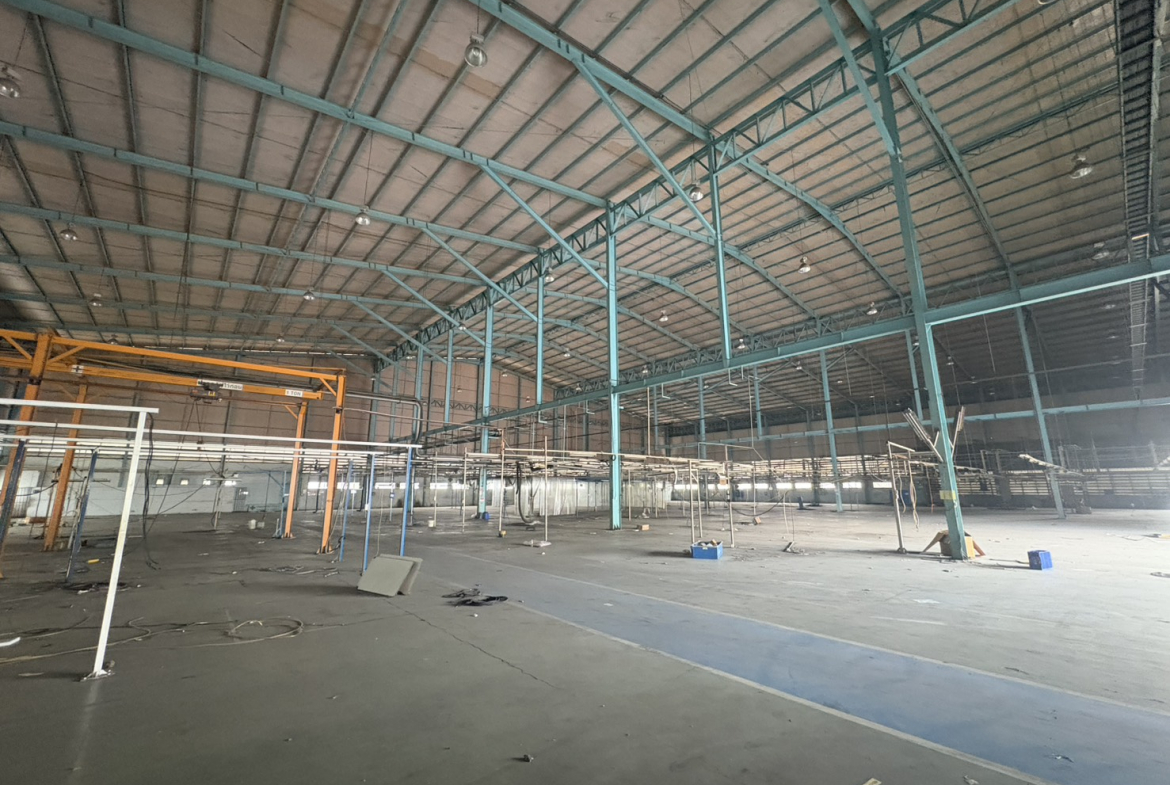 Spacious factory/warehouse for rent in a prime industrial area of Bang Sao Thong, Samut Prakan. Located in a purple zone, suitable for applying for a Factory License (Ror Ngor 4). Convenient access from Bang Na-Trad Road, ideal for manufacturing or distribution center operations.