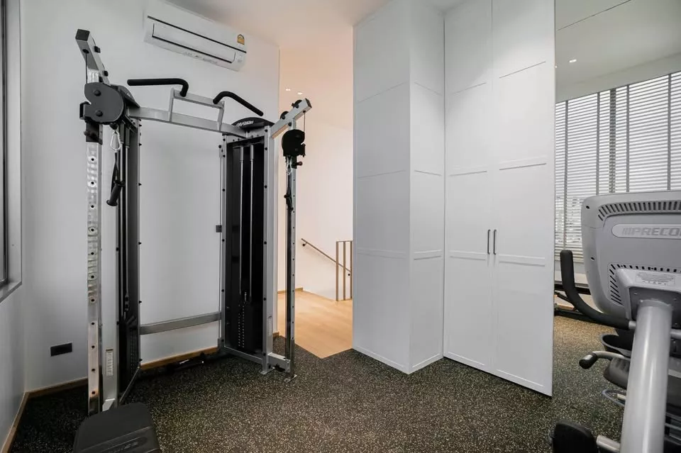 3 bedrooms, 4 bathrooms, 1 private fitness room, parking for 4 cars.