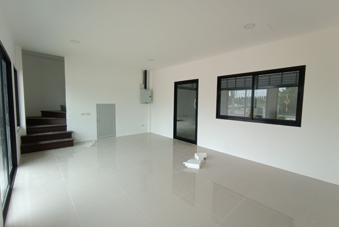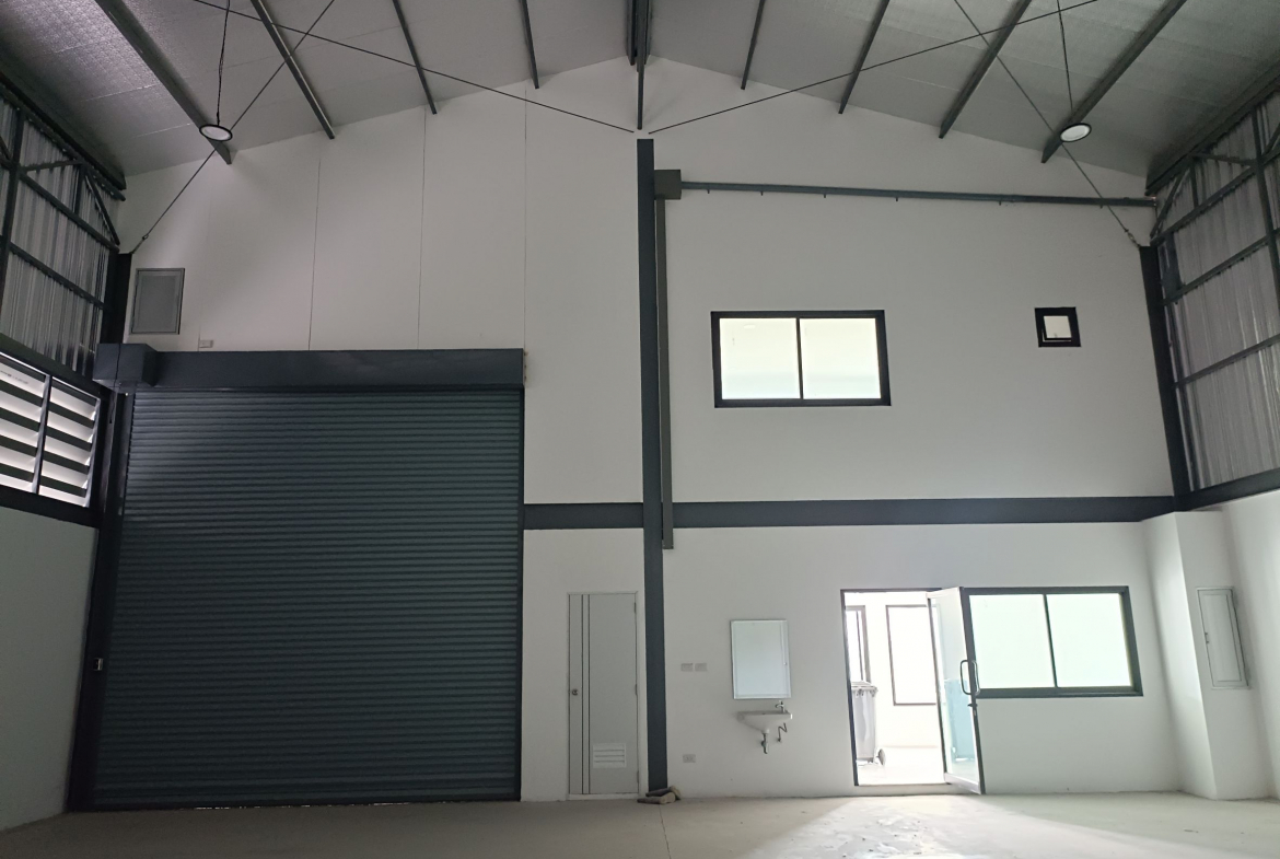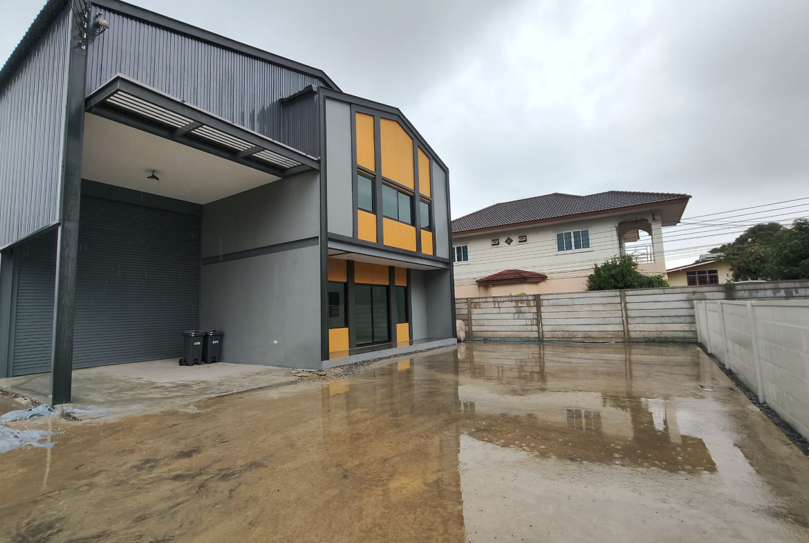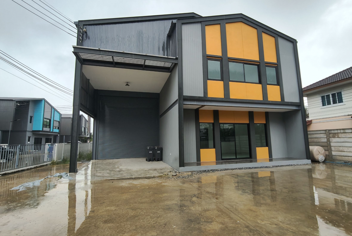 For sale modern warehouse with office located in Bang Mae Nang, Bang Yai District, Nonthaburi. The property features a warehouse area of 144 sqm (12×12 meters) and a two-story office space totaling 80 sqm on a land plot of 117.5 sqw. Designed with a contemporary façade in orange and gray tones, the building offers functionality and style, including a large roller shutter door, bright interior office with glass partitions, and modern bathroom facilities. The outdoor area provides ample parking and easy truck access, ideal for small logistics, e-commerce, or storage businesses. Conveniently situated close to Central Westgate, IKEA Bang Yai, Kasemrad Hospital, and local schools. Easy access to Kanchanaphisek Road and Rattanathibet Road makes this location perfect for business operations.
