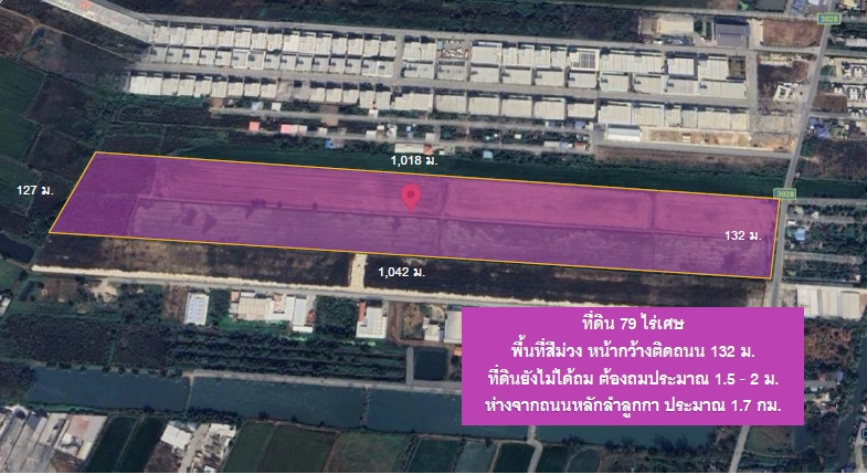 ขายที่ดินสีม่วง ลำลูกกา ปทุมธานี | 79 ไร่ เหมาะสร้างโรงงาน-โกดัง