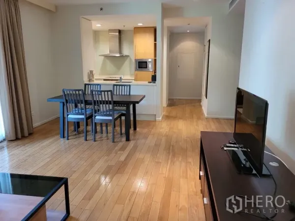 Live in the heart of Silom–Bang Rak with this spacious 96 sqm, 2-bedroom, 2-bathroom condominium just moments from BTS Sala Daeng and MRT Si Lom. The home features a bright open-plan living and dining area, practical built-in storage, and a functional kitchen ideal for city living. A private balcony opens to urban views, while the master suite offers comfort and privacy for everyday relaxation.