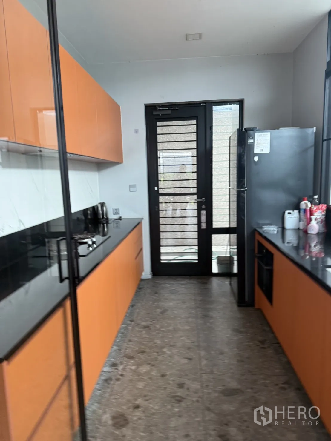 Set in the prestigious Nantawan Rama 9 – Srinakarin estate, this luxury 3‑storey detached house offers 570 sq.m of living space on 145 sq.wah (approx. 580 sq.m or 0.36 rai). The 5‑bed, 7‑bath layout is designed for family living with a private elevator and parking for 6–8 cars. Bright living and dining rooms feature floor‑to‑ceiling windows and herringbone floors, opening to a landscaped garden. A modern kitchen, generous bedrooms with walk‑in closets, and spa‑style bathrooms with rain shower and jacuzzi complete the home.