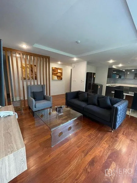 Set within L3 Avenue in the sought-after Thonglor zone, this 115 sqm 2-bedroom, 2-bath condo blends quiet residential living with city convenience. A bright open-plan lounge and dining area flow to a separate, fully fitted kitchen with sleek cabinetry, double sink and electric hob. Floor-to-ceiling windows and warm hardwood floors create an inviting feel, while two modern bathrooms feature a bathtub and a walk-in shower.
