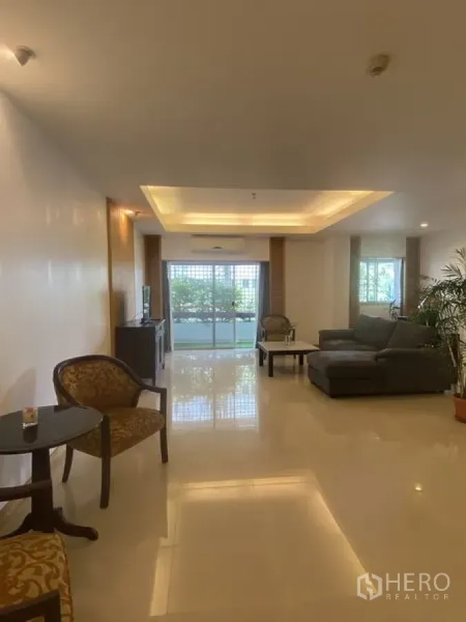 Spacious and bright, this 175 sqm, 2-bedroom, 2-bath condominium in Sathon offers a comfortable city lifestyle. The open-plan living and dining zone features cove lighting and a large balcony for fresh air. A separate, fully fitted kitchen comes with granite countertops, ample cabinetry, hob, hood and built-in oven. The primary suite enjoys balcony access and extensive built-in wardrobes, while both bathrooms include sizable vanities. Polished wood floors and air conditioning are found throughout, and residents enjoy a resort-style swimming pool within the complex.