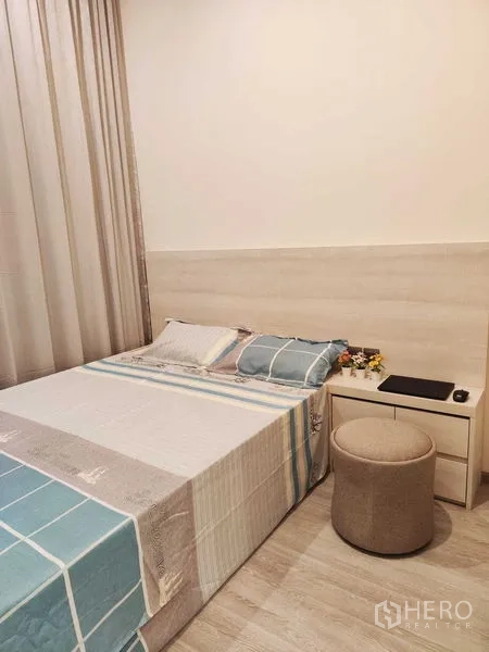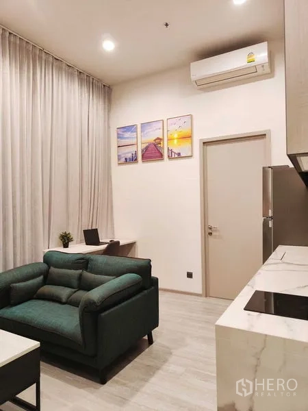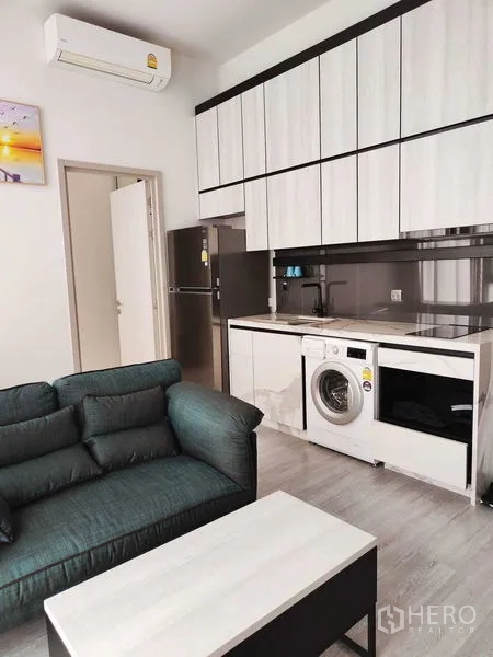 Set in Phra Khanong’s Bang Chak community, this 33 sqm, 1-bedroom, 1-bathroom condominium offers efficient urban living just a short walk from BTS Punnawithi. The layout maximizes space with a bright living area that opens to a breezy balcony, an efficient kitchenette for easy meal prep, and a contemporary bathroom with glass shower. Large windows bring in natural light, creating a calm retreat ideal for professionals or couples seeking city convenience.