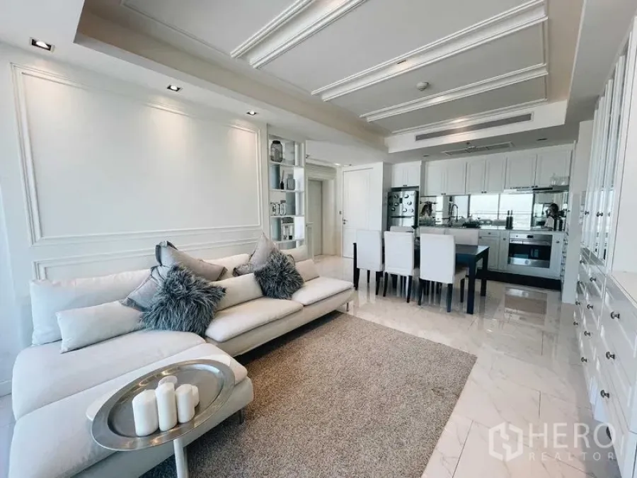 Live riverside in this 78 sqm, 2-bedroom, 2-bath condominium in Bang Kho Laem. The high-floor layout opens to a bright living and dining area with floor-to-ceiling glass and a balcony framing the Chao Phraya skyline. A private lift lobby welcomes you home. The modern kitchen features full-height cabinetry and built-in appliances, while the primary suite boasts a glass-enclosed bathroom, generous wardrobes, and sweeping city views. A second bedroom, stylish marble bathrooms, and a utility balcony with washer/dryer complete the home.