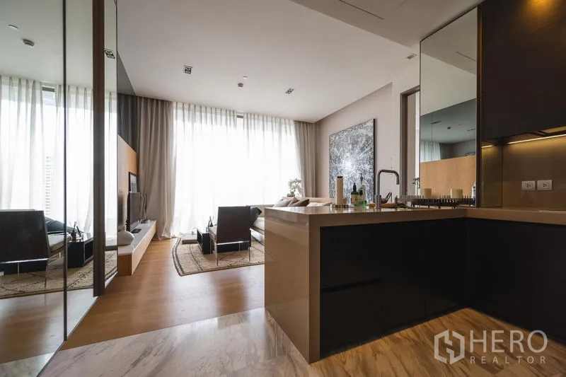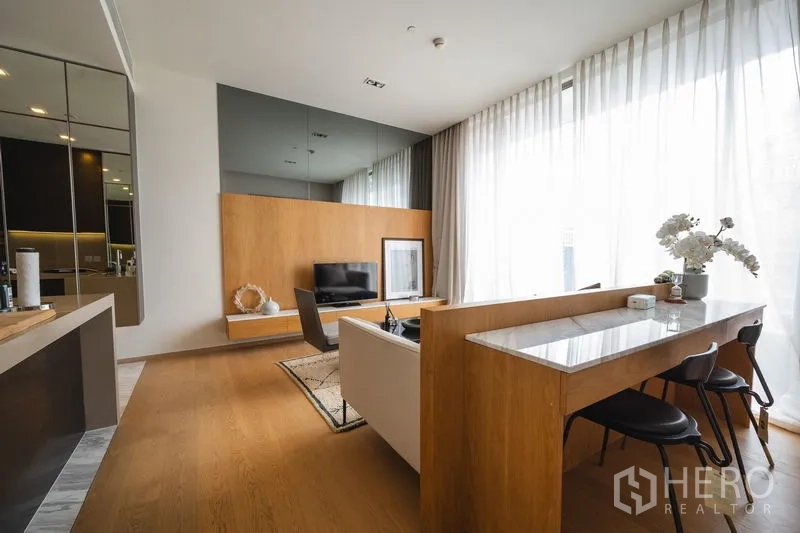 Step into a well-planned 56 sqm condominium for rent in Bang Rak, a short walk from BTS Sala Daeng. The residence features a bright open-plan living and dining area with floor-to-ceiling windows, a modern fitted kitchen with hob and hood, a sleek bathroom, and a private balcony capturing the Silom skyline. Quality finishes, built-in storage, air-conditioning, and 24-hour security ensure everyday comfort. Enjoy on-site facilities including a swimming pool, fitness gym, and a welcoming lobby.
