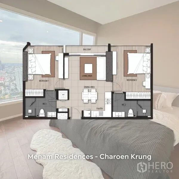 For sale 2 Bedroom Condominium in Menam Residences in Wat Phraya Krai, Bang Kho Laem, Bangkok BTS Saphan Taksin