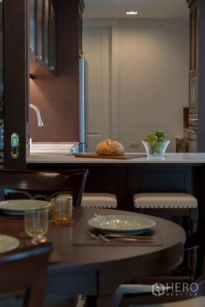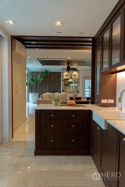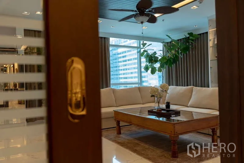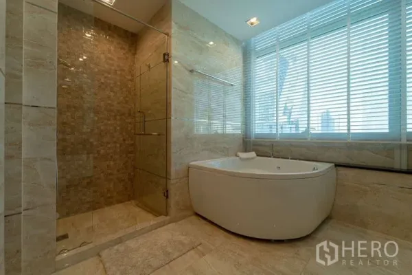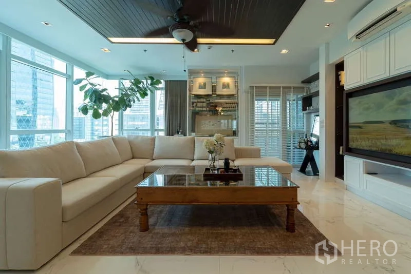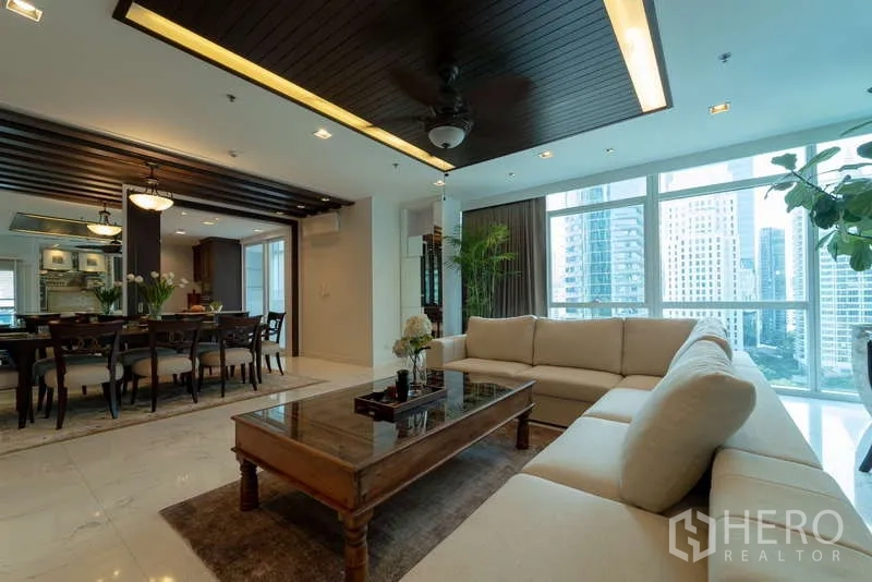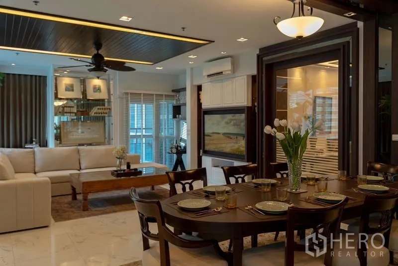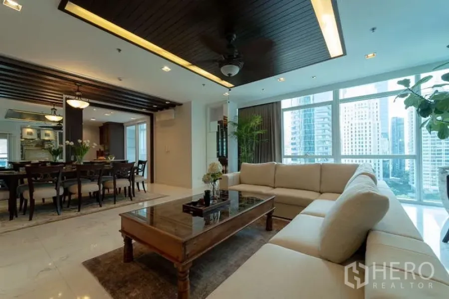 Discover a 220 sqm, 4-bedroom, 5-bathroom condominium in prestigious Pathum Wan, Bangkok. The residence features a bright open-plan living and dining area with floor-to-ceiling windows, a private balcony capturing skyline views, and a sleek fully fitted kitchen. All bedrooms are generously sized, each with an ensuite and built-in storage; the master suite adds a spa-style bath. Quality finishes, hardwood floors, and central air elevate everyday comfort. Residents enjoy premium facilities including a resort-style pool, professional gym, 24-hour security, and secure parking.