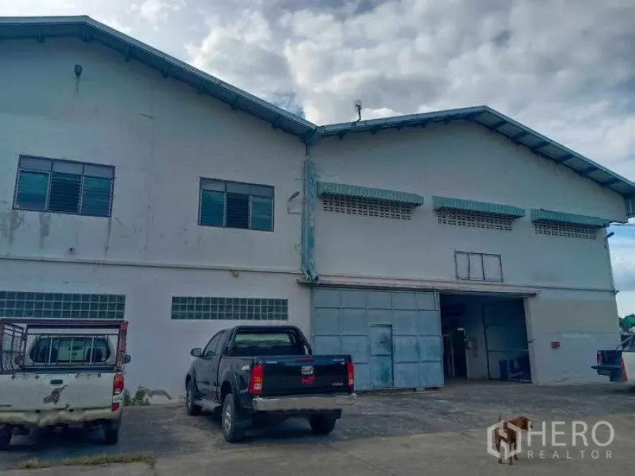 Positioned in Nong Suea, Pathum Thani, this 2,000 sqm warehouse for rent sits on a generous 4,400 sq wah (approx. 17,600 sqm, about 11 rai) land parcel along the Rangsit–Nakhon Nayok corridor. The high‑clearance roof, wide column spans and smooth concrete floor create efficient storage and production space. A large concrete yard and long driveway support easy truck movement and on‑site parking, while multiple loading doors enable straightforward operations. The building includes internal office/mezzanine areas and clear sightlines for supervision. Flexible lease terms make it ideal for growing operations.