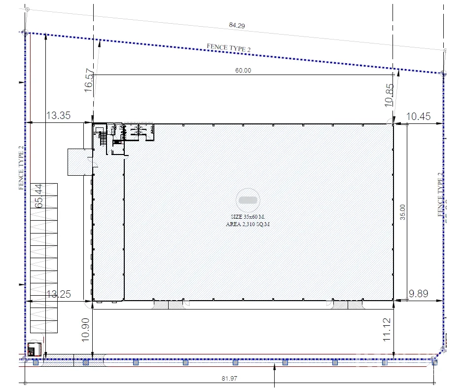 Standalone factory with office in the Purple Zone, ideal for manufacturing. Offering 2,310 sq.m usable area on 1,286 sq.wah of land (~5,144 sq.m, ~3.22 rai). The warehouse features high steel trusses with skylights, multiple covered loading bays with roller shutters, and a heavy‑duty reinforced concrete floor rated up to 3 tons/sq.m. The integrated two‑storey office is air‑conditioned with staff restrooms and showers. On‑site systems include a water pump, 5,000‑liter storage tank, wastewater treatment, fire alarm and emergency lighting, plus full perimeter fencing and a secure gate.