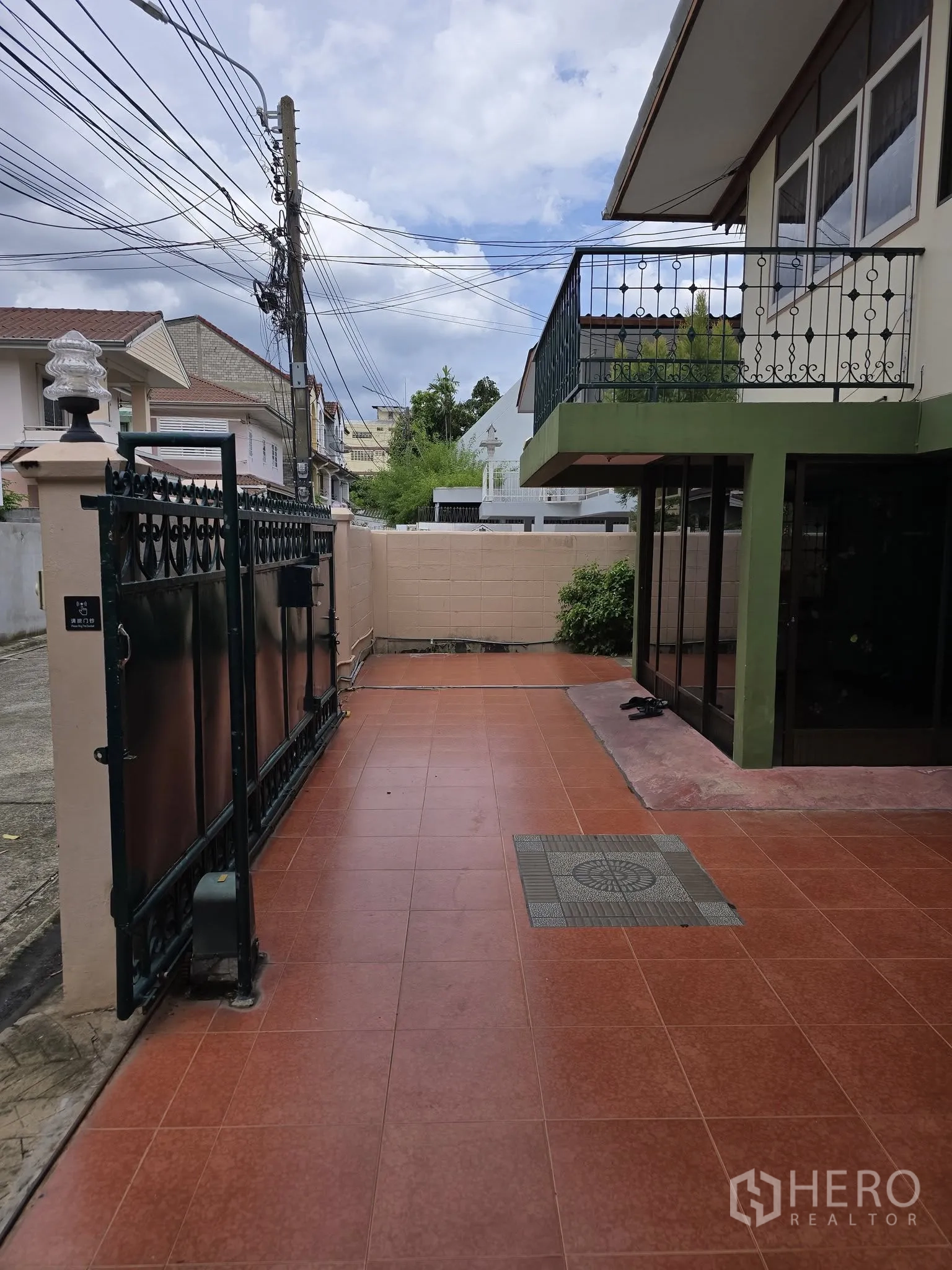 Set in Wang Thonglang, this versatile two-storey home office offers 250 sq m of usable space on a 50 sq wah plot (≈200 sq m, ≈0.125 rai). The gated property features a wide tiled terrace and an oversized covered carport, ideal for multiple cars or loading. Sliding glass doors open to flexible ground-floor rooms suited for reception, meeting or showroom use. A practical Thai kitchen with double sink and extractor, a ground-floor bathroom, security grilles, balcony, and air‑conditioned bedrooms add comfort and function.
