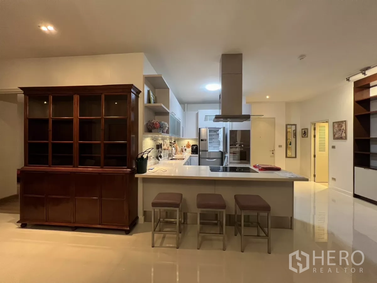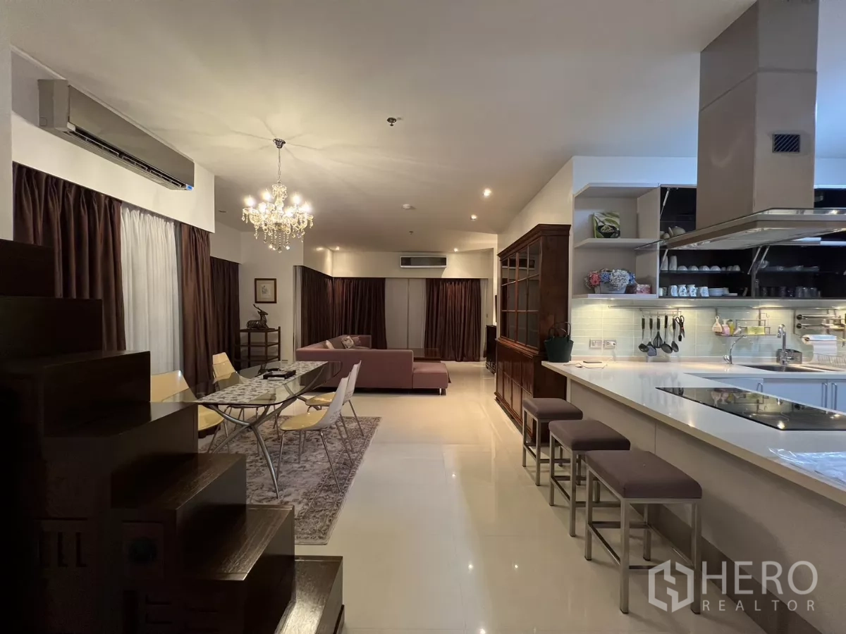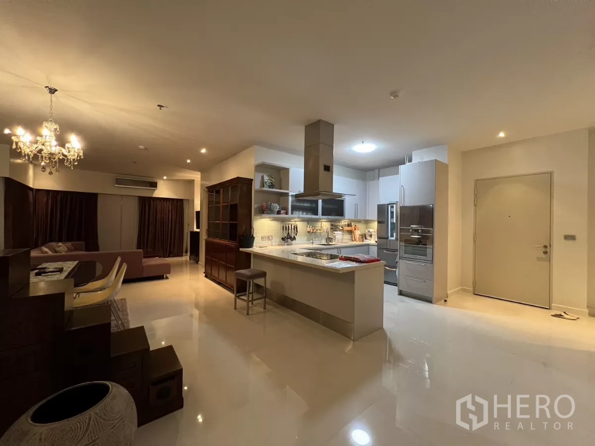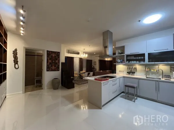 Discover a spacious 137 sqm, 2-bedroom, 3-bath condominium in the sought-after Hua Mak area of Bang Kapi. The airy, open-plan living and dining zone welcomes abundant natural light and flows to a private balcony with relaxing city views. Both bedrooms are generously sized, with an ensuite to the primary, while a well-appointed kitchen, dedicated storage/laundry space and a guest bathroom enhance everyday convenience. Residents enjoy secure entry, ample parking and lifestyle facilities including a swimming pool, fitness center and an inviting lobby.
