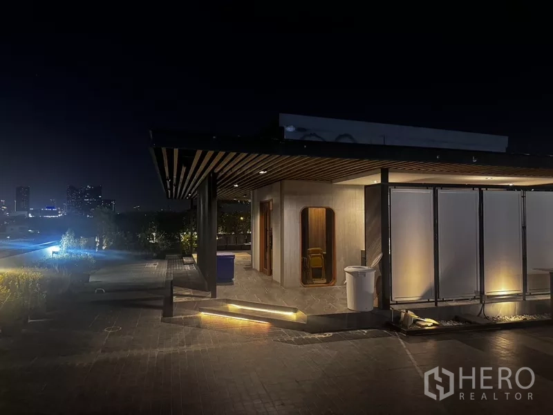 On‑site parking accommodates 8–10 cars, with an option for 12 extra spaces via a separate lease that also grants access to a sports field and landscaped garden. The rooftop bar and recreation terrace create a standout venue for company events and wellness. Positioned minutes from Seacon Square and Paradise Park, close to Rajamangala National Stadium and Ramkhamhaeng University, and convenient to Samitivej Srinakarin Hospital and ARL Hua Mak, this is a turnkey HQ or co‑working hub in well‑connected Suan Luang.