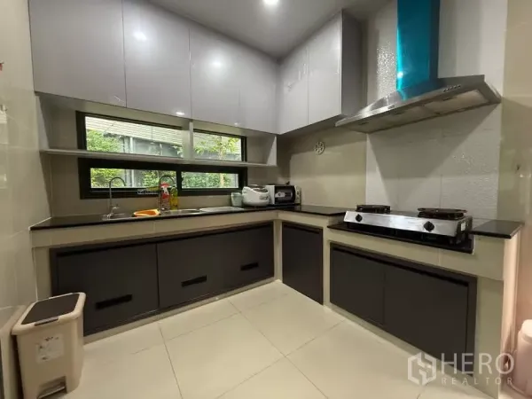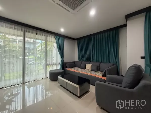 Nestled in Hua Mak, Bang Kapi, this 4-bedroom, 4-bath detached house offers 250 sqm of usable space on a private 84 sq wah plot (approx. 336 sqm or about 0.21 rai). The light-filled living and dining area flows to a functional modern kitchen, while well-proportioned bedrooms include a serene master suite with ensuite. Thoughtful details such as storage, laundry area, balconies, and a shaded carport enhance daily comfort. A gated frontage and easy-care garden provide privacy and a welcoming first impression—ideal for growing families or a home office lifestyle.