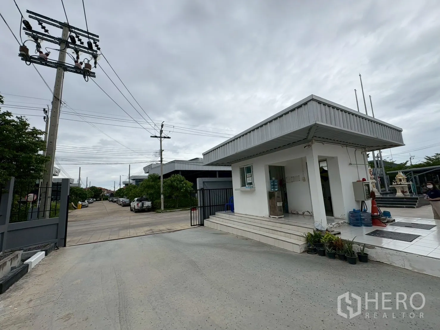 Standalone factory for sale in Bang Bo, Samut Prakan. The property offers 1,252 sq.m of usable area on 1,909 sq.wah of land (approx. 7,640 sq.m or about 4.77 rai / 4 rai 3 ngan 9 sq.wah). Designed for efficient operations and a strong corporate image, the facility features 5–9 m clear height, epoxy-coated floors, 5 tons/sq.m loading capacity, an overhead crane system, and multiple roller shutters. Power is robust with 250 and 500 kVA transformers, and air-conditioning runs throughout the production areas. A wide concrete yard, covered parking and a secure gatehouse support easy logistics.