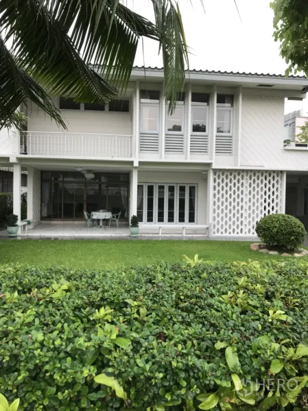 Set in a leafy Ekkamai compound, this 4-bedroom, 4-bath detached house offers 350 sqm of bright living space on 60 sq wah (approx. 240 sqm or 0.15 rai). Interiors feature warm hardwood floors, a generous living area with built-in media wall, and large windows overlooking lush greenery. The dining room connects to a modern closed kitchen with granite counters, an island, and a built-in oven. The master suite enjoys an ensuite bath and walk-in closet, while other bedrooms are spacious and well lit.