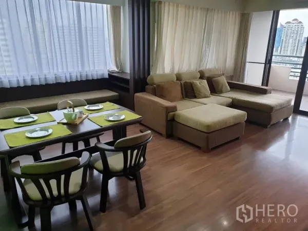This 123 sqm, 2-bedroom, 2-bath condominium for rent in Watthana’s Khlong Tan Nuea blends warm wood flooring, tasteful Asian accents and bright, open-plan living. Relax in a generous lounge and dining zone, step onto a private balcony for city breezes, and cook in a light, well-appointed kitchen with wood countertops and ample storage. Bathrooms include a glass-enclosed rain shower, and the serene primary bedroom offers direct access to the ensuite.