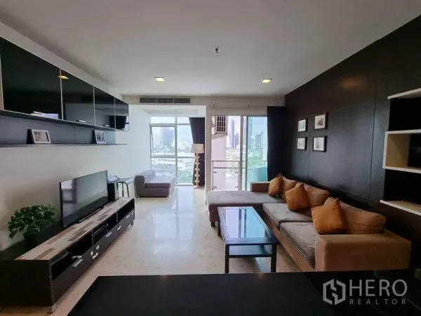 Set within Khlong Toei and footsteps from BTS Ekkamai, this 133 sqm, 3-bedroom, 2-bath condominium delivers generous city living. The bright lounge opens to a balcony via wide sliding doors, while a separate dining zone features a solid wood table and extensive built-in glass cabinetry for display and storage. Each bedroom is spacious and tranquil with padded headboards and warm timber flooring, and the well-planned layout offers privacy for families or sharers.