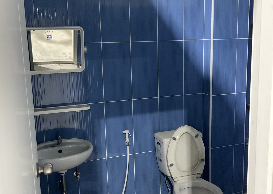– มีห้องน้ำในตัว (ทุก 500 ตร.ม. มีห้องน้ำ 2 ห้อง)
