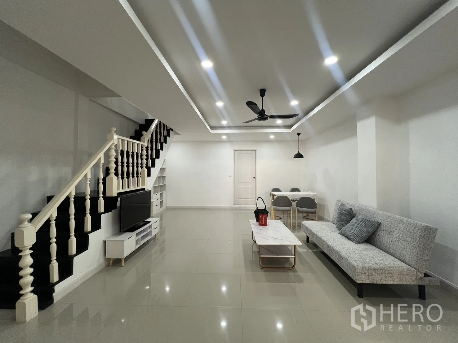 Professionals and expats often look at Phra Khanong because it combines BTS access, upper Sukhumvit convenience, and better space value than some nearby prime districts. A townhouse with a flexible live-work layout can be a practical choice for residents who need a home office, guest room, or extra storage.