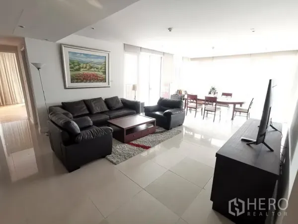 คอนโด 1 ห้องนอน 1 ห้องน้ำให้เช่าในย่านวัฒนา เพียงไม่กี่นาทีจาก BTS อโศก และ MRT สุขุมวิท พื้นที่ใช้สอย 35 ตร.ม. จัดสรรลงตัว ห้องนั่งเล่นโปร่งด้วยหน้าต่างเต็มบาน มีโซฟาและโต๊ะกลาง มุมรับประทานอาหารพร้อมที่แขวนแก้วไวน์ และครัวบิวท์อินท็อปหินสีดำ เตาไฟฟ้า พร้อมตู้เก็บของ