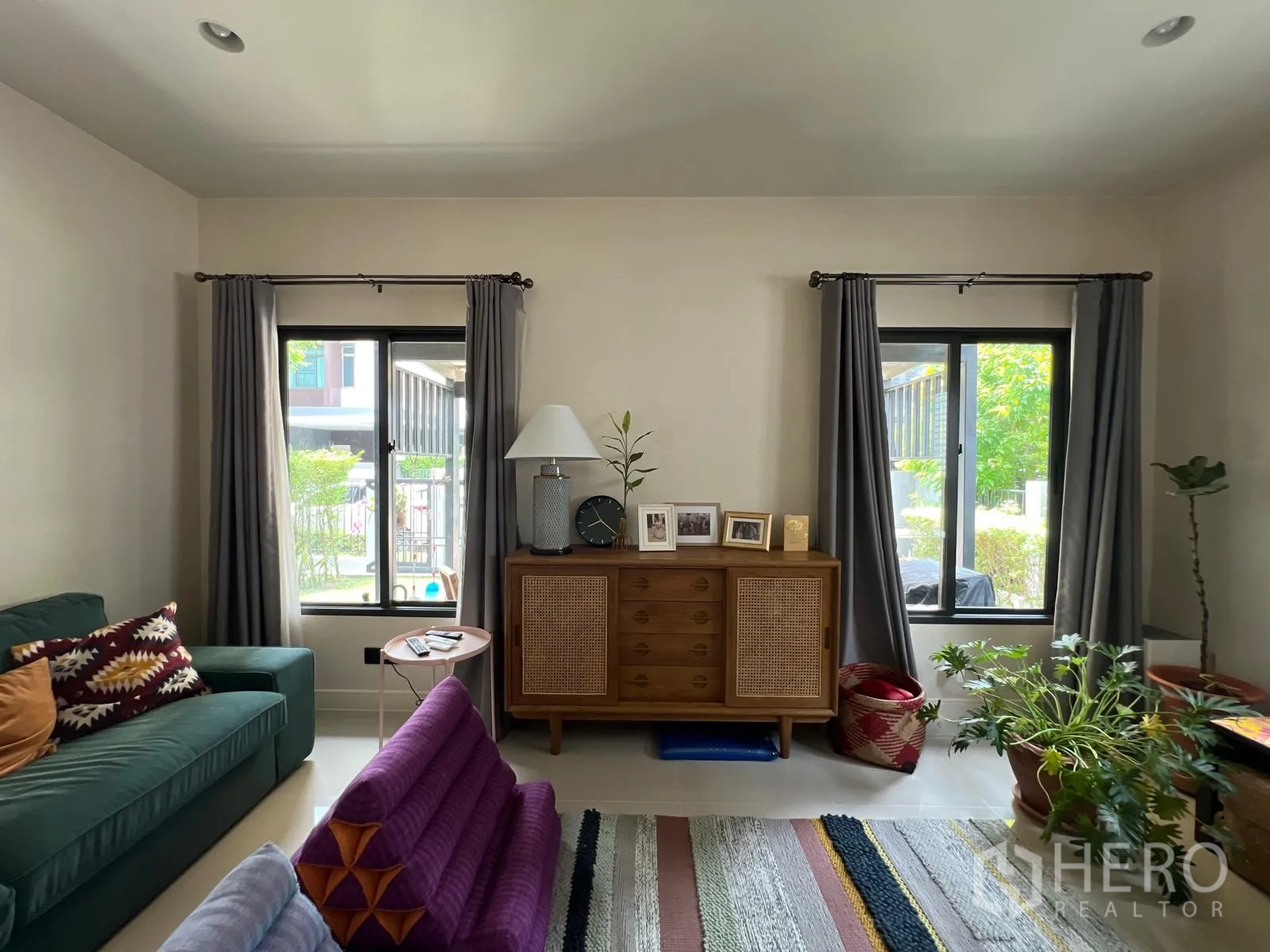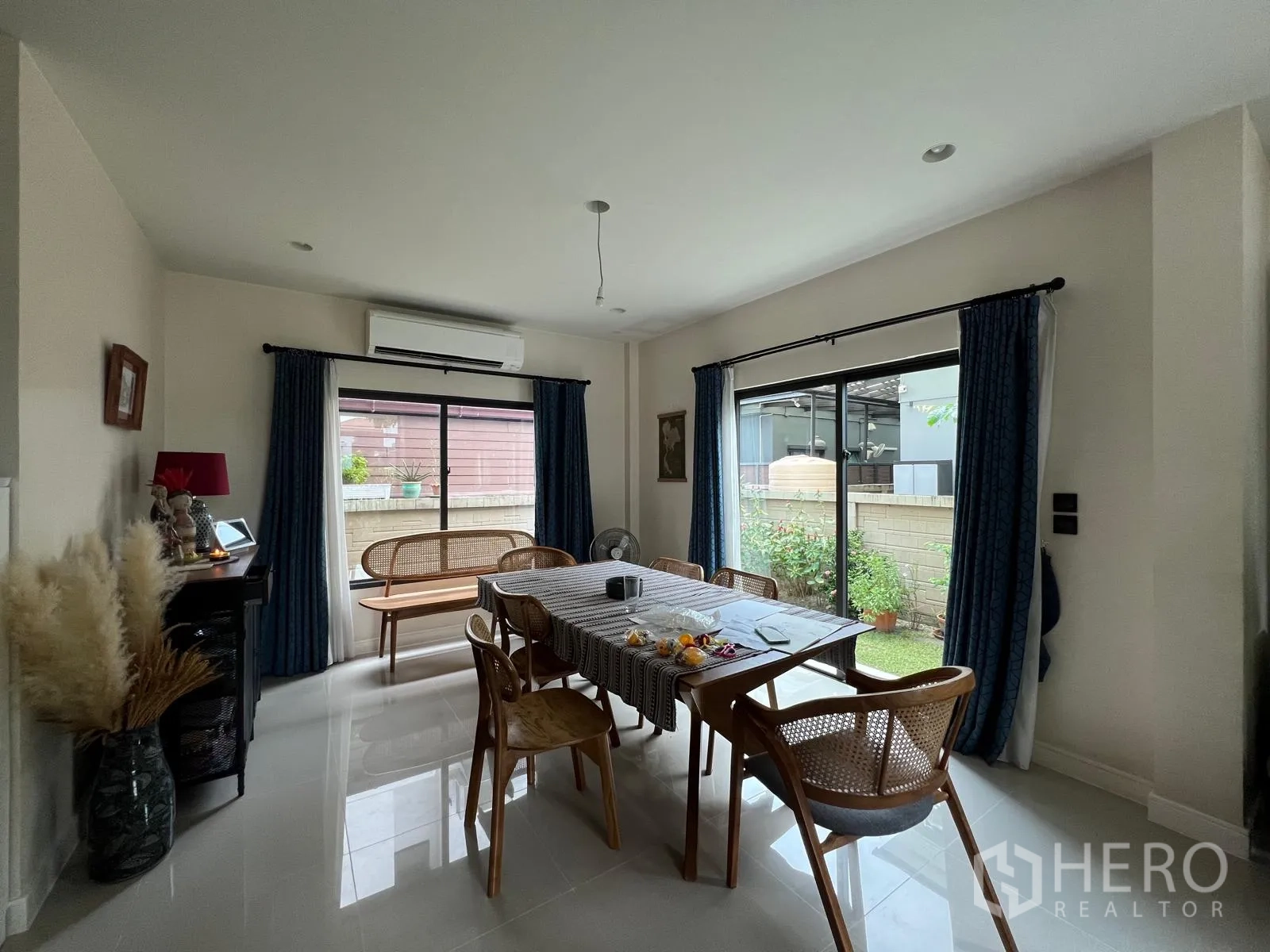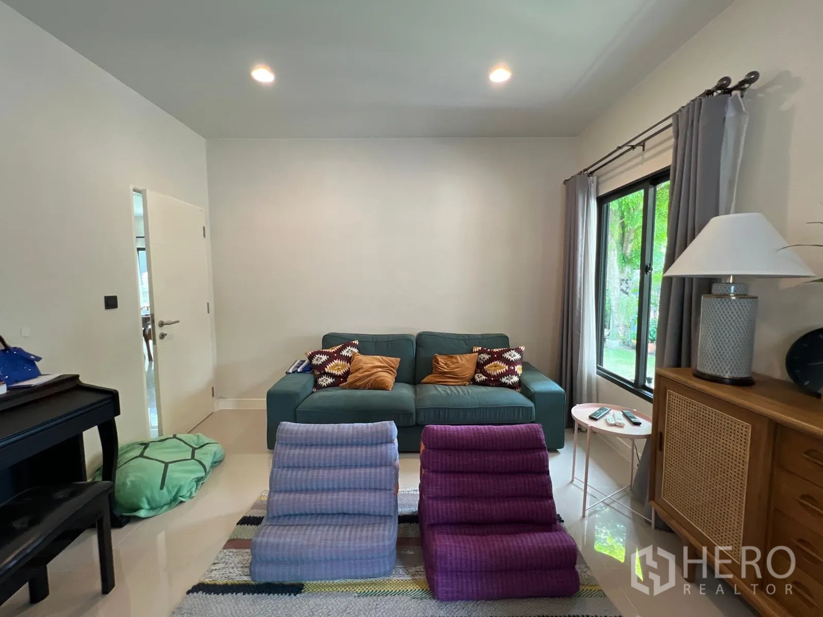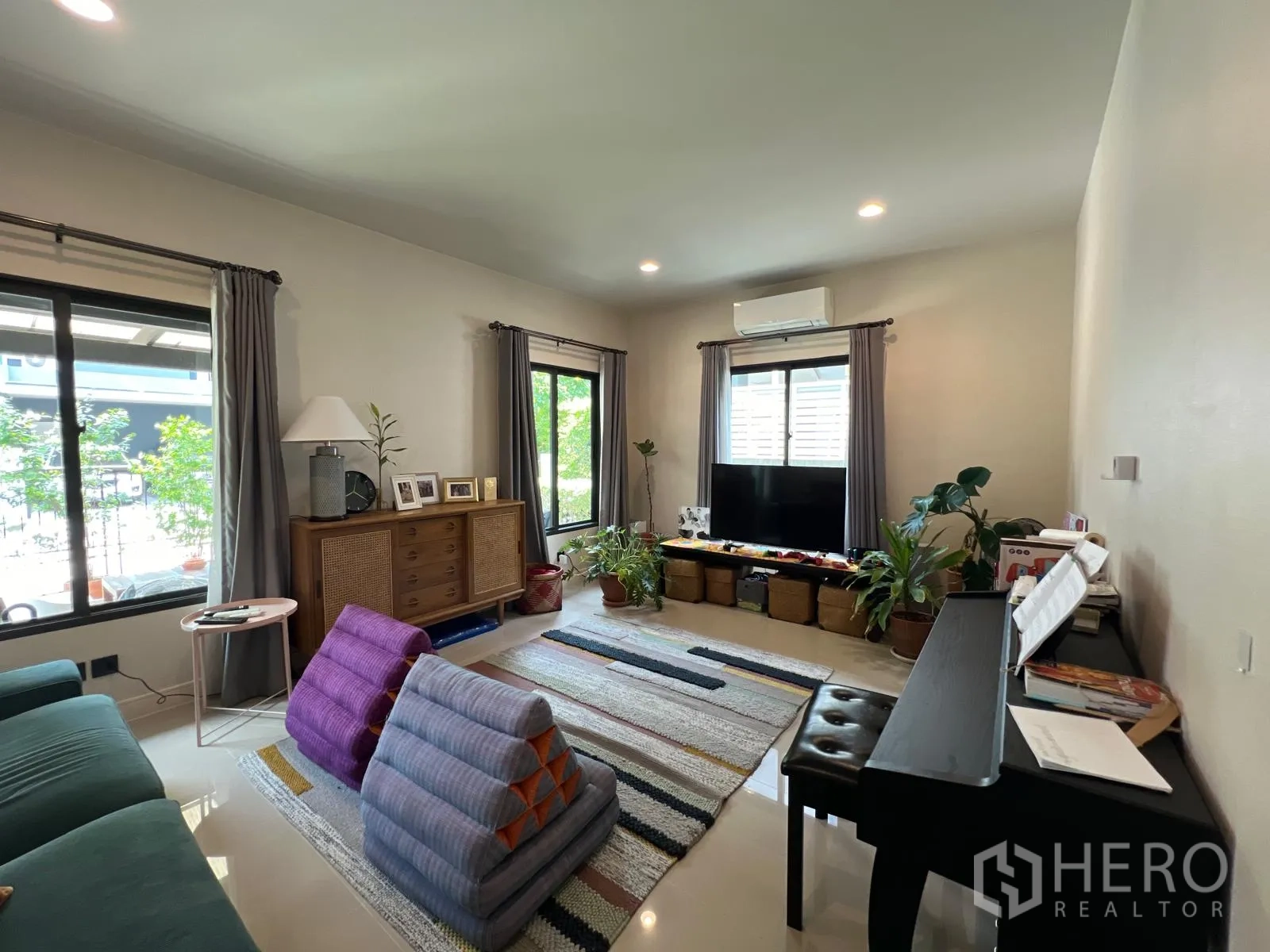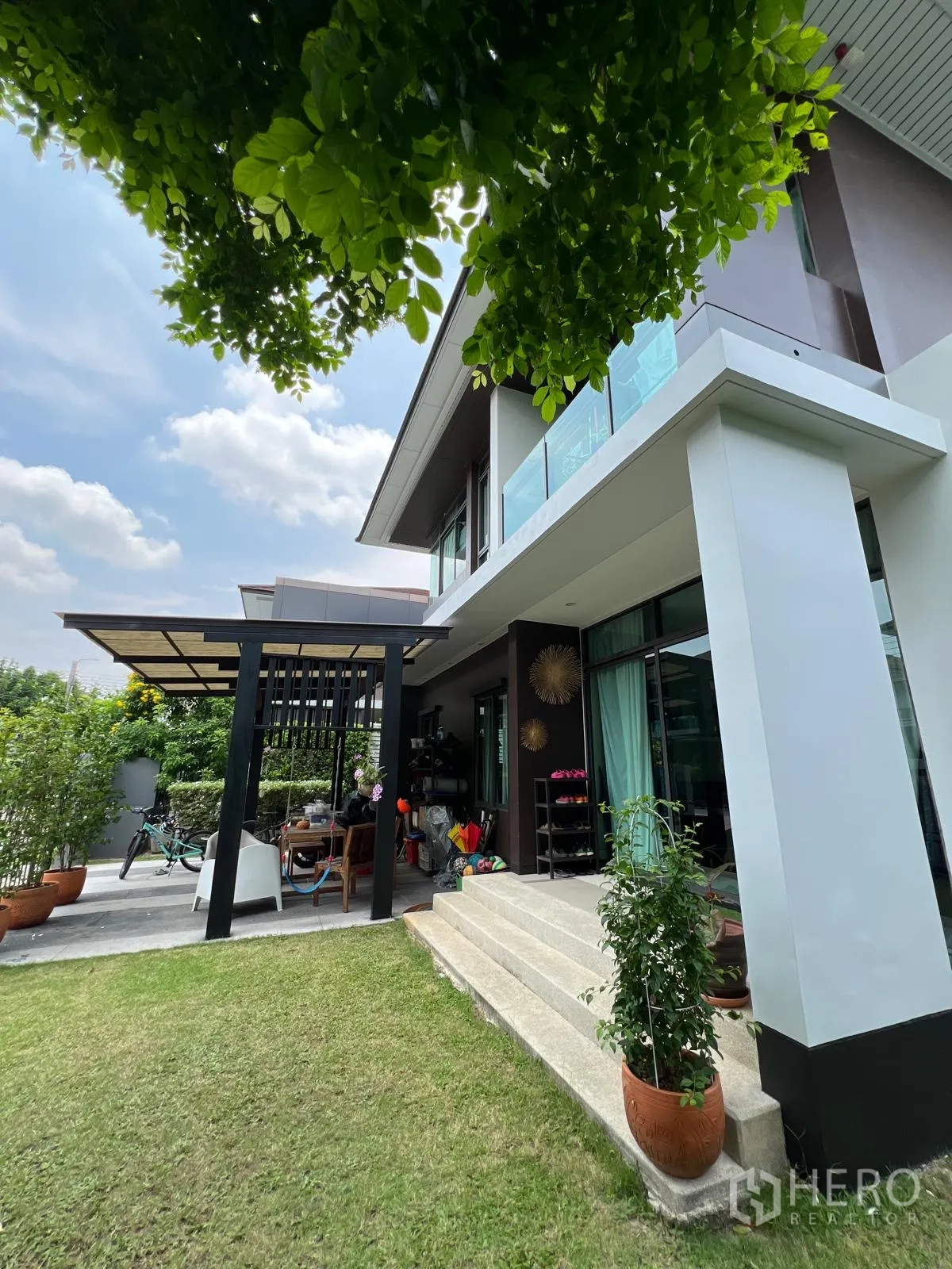 ภายนอกมีสนามหญ้าเขียว พุ่มไม้บังสายตา สวนข้างบ้าน และที่จอดรถในร่ม ทำเลตอบโจทย์ครอบครัว ใกล้โรงเรียนนานาชาติ Brighton College Bangkok โรงพยาบาลสมิติเวช ศรีนครินทร์ และเวชธานี แหล่งช้อปปิ้ง The Mall บางกะปิ The Paseo Town และ Market Place กรุงเทพกรีฑา ใกล้สนามราชมังคลาฯ และศูนย์กีฬาหัวหมาก เดินทางสะดวกบนเส้นกรุงเทพกรีฑาและรามคำแหง นัดชมบ้านได้เลยวันนี้