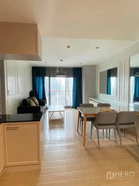 สัมผัสพื้นที่ใช้สอย 83 ตร.ม. ของคอนโด 1 ห้องนอน 2 ห้องน้ำ ในเขตคลองเตย เพียงไม่กี่นาทีจาก BTS พร้อมพงษ์ แบบลอฟต์พร้อมกระจกสูงเต็มผนัง เปิดรับแสงธรรมชาติและวิวเมืองกว้างในโซนนั่งเล่น–ทานอาหาร พร้อมระเบียงรับลม ครัวตัวแอลทันสมัยมีตู้เก็บของมากมาย เตา เครื่องดูดควัน ไมโครเวฟ และตู้เย็นขนาดใหญ่ ห้องนอนบรรยากาศสงบด้วยผนังลายไม้และวอล์กอินคลอเซ็ตบานกระจกพร้อมลิ้นชักในตัว ห้องน้ำหลักมีอ่างล้างหน้าแบบคู่ ห้องอาบน้ำกระจกแยก และอ่างอาบน้ำ อีกทั้งมีห้องน้ำสำหรับแขก