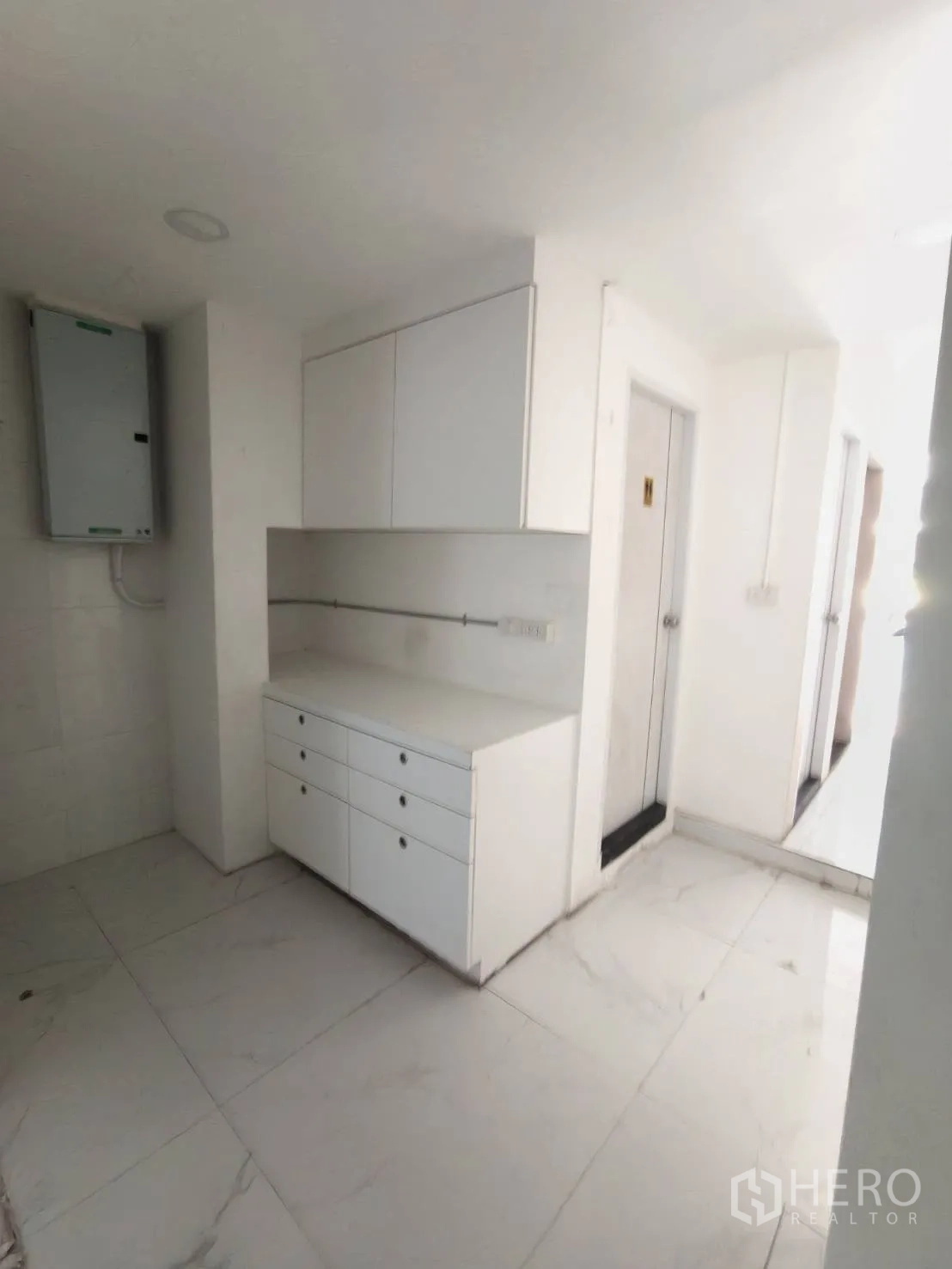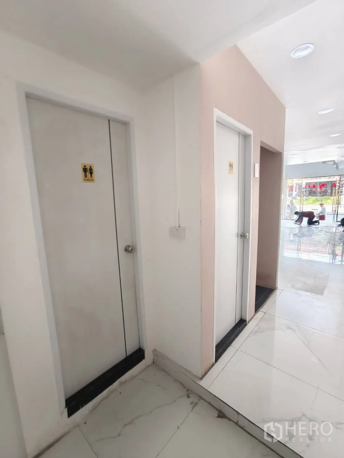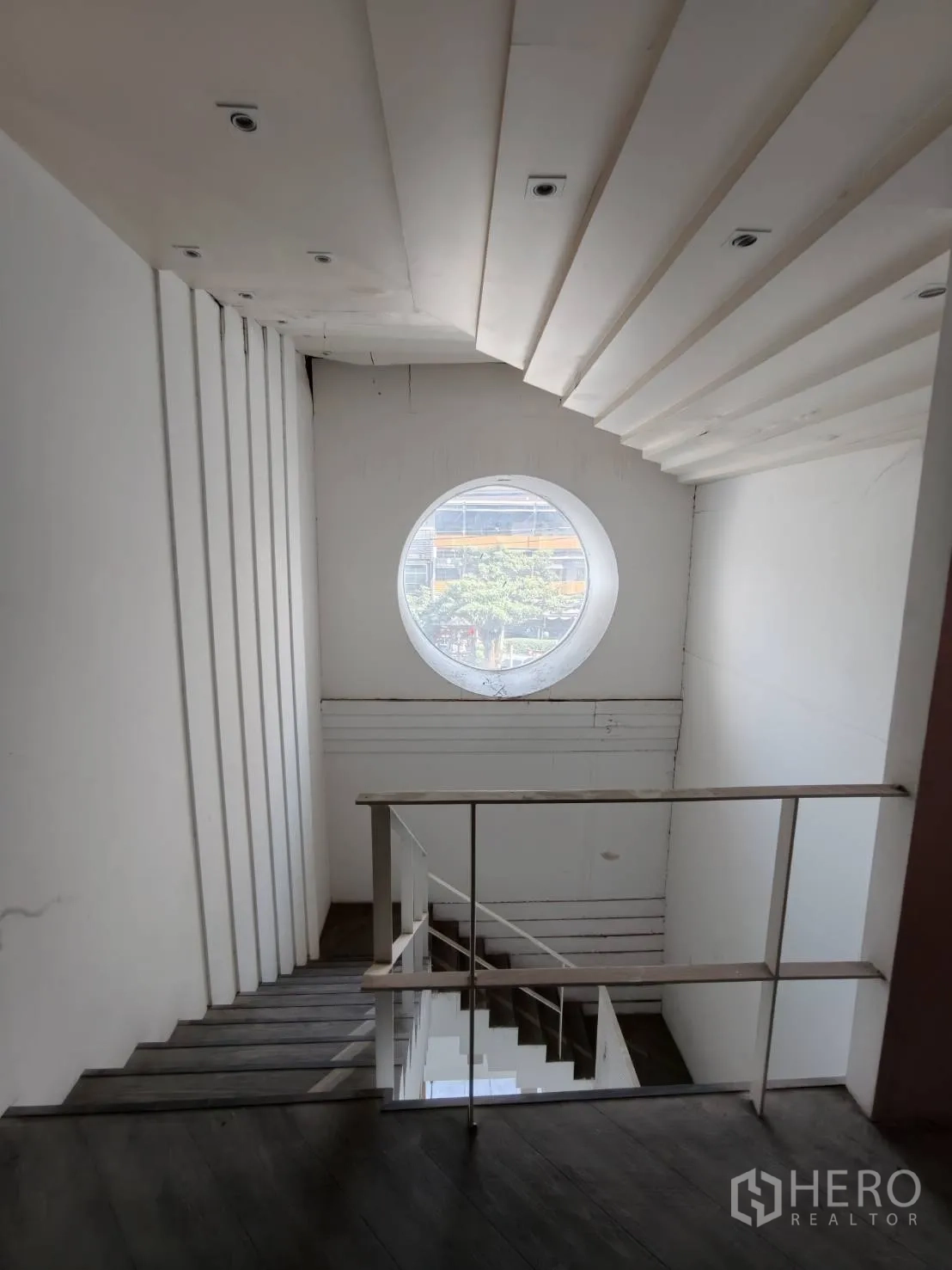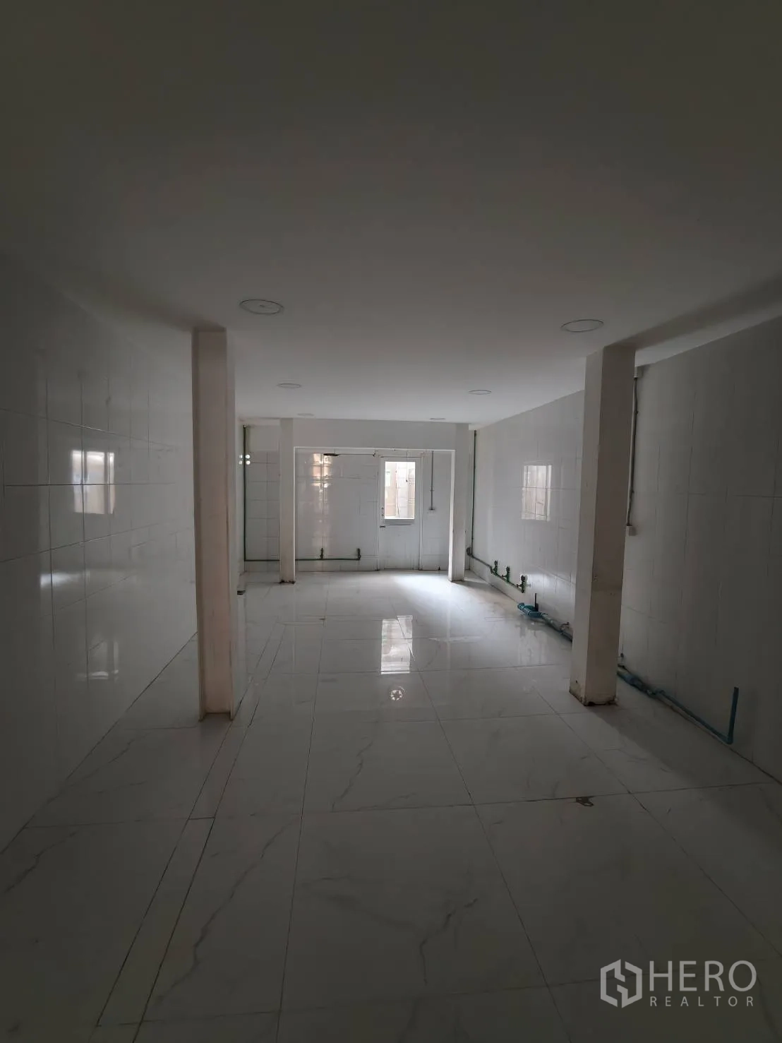 อาคารพาณิชย์ปรับโฉมใหม่ให้เช่าในเขตวัฒนา พื้นที่ใช้สอยประมาณ 280 ตร.ม. ขนาดที่ดิน 20 ตร.วา (ราว 80 ตร.ม. หรือประมาณ 0.05 ไร่) โดดเด่นด้วยหน้าร้านกระจกเต็มบาน เพดานสูง ไฟดาวน์ไลท์ และพื้นกระเบื้องลายหินอ่อน ภายในมีบันไดวนสีขาวขึ้นชั้นลอย ซุ้มโค้ง และบูธกั้นสำหรับแสดงสินค้าหรือห้องลอง เหมาะกับค้าปลีก โชว์รูม คลินิก คาเฟ่ หรือซาลอน