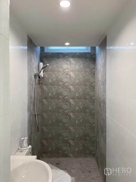 โฮมออฟฟิศ 2 ห้องนอน 3 ห้องน้ำ ออกแบบเพื่อการอยู่อาศัยและทำงานในที่เดียว พื้นที่ใช้สอย 130 ตร.ม. โปร่งโล่งด้วยเพดานสูง กระจกบานใหญ่และผนังกั้นกระจก รับแสงธรรมชาติจากระเบียงและโถงบันไดมีสกายไลท์ ห้องน้ำใหม่พร้อมเครื่องทำน้ำอุ่น ระบบแอร์แบบแยกและไฟ LED ประหยัดพลังงาน พร้อมปรับแต่งเป็นโซนทำงานหรือห้องประชุมได้ตามต้องการ ที่ดิน 40 ตร.วา (ประมาณ 160 ตร.ม. หรือราว 0.10 ไร่) ถือครองฟรีโฮลด์