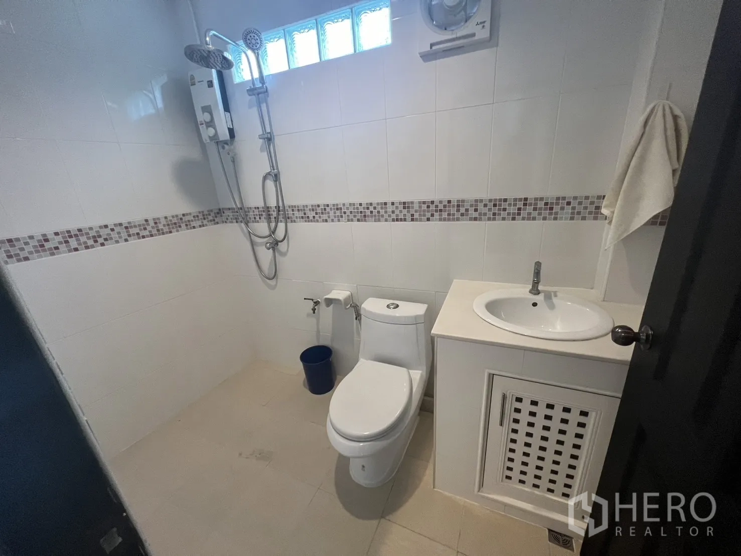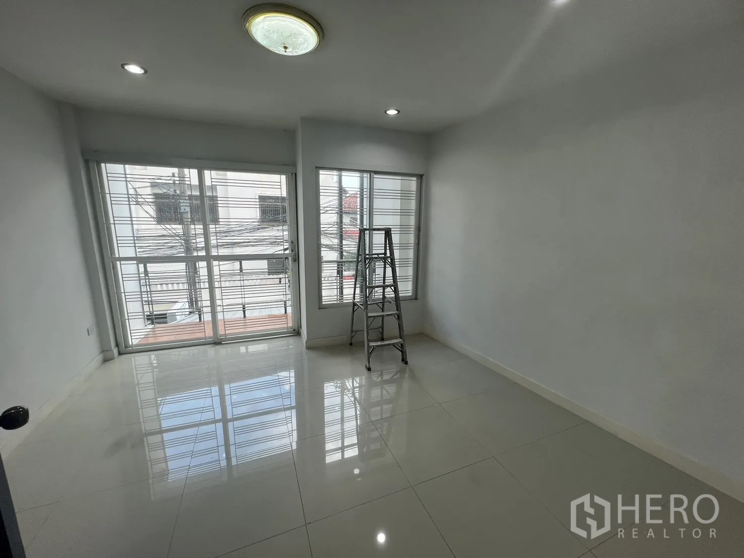 โฮมออฟฟิศทำเลพระโขนง ใกล้ BTS เอกมัย เหมาะทั้งอยู่อาศัยและทำงาน พื้นที่ใช้สอย 168 ตร.ม. บนที่ดิน 40 ตร.วา (ประมาณ 160 ตร.ม. หรือราว 0.10 ไร่) จัดสรร 4 ห้องนอน 3 ห้องน้ำ ภายในสว่างโปร่ง พื้นกระเบื้องเงา เหล็กดัดประตูกระจก เครื่องปรับอากาศหลายจุด ครัวปิดใช้งานสะดวก เฉลียงหน้าบ้านมีหลังคา และเทอเรซชั้นดาดฟ้ากว้างสำหรับพักผ่อนหรือจัดกิจกรรม