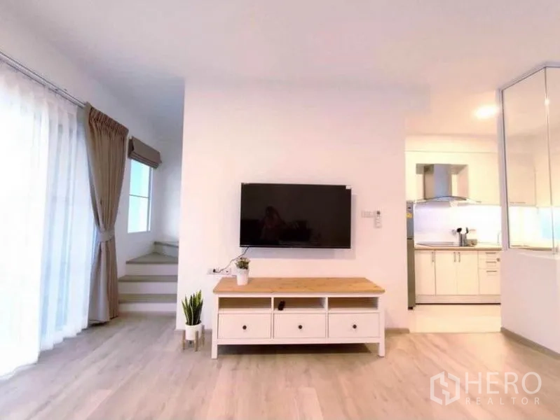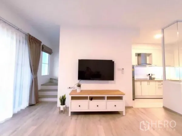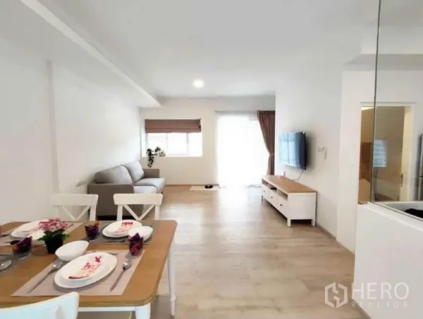 ทาวน์เฮ้าส์ 3 ห้องนอน 3 ห้องน้ำ สำหรับขายในเขตประเวศ กรุงเทพฯ มาพร้อมพื้นที่ใช้สอย 122 ตร.ม. บนที่ดิน 29 ตร.ว. (ประมาณ 116 ตร.ม. ราว 0.07 ไร่) ผังห้องใช้งานง่าย ประกอบด้วยโซนรับแขกและทานอาหารแบบเปิดโล่งสว่าง ห้องครัวบิวท์อินพร้อมตู้เก็บของ และห้องนอนขนาดพอเหมาะสำหรับครอบครัว ห้องน้ำปูกระเบื้องสะอาด พื้นที่เก็บของ และลานซักล้าง/อเนกประสงค์ด้านหลัง ช่วยให้การใช้ชีวิตประจำวันสะดวก ตั้งอยู่ในทำเลที่อยู่อาศัยเงียบสงบ เดินทางสะดวก เหมาะทั้งอยู่อาศัยเองและปล่อยเช่า