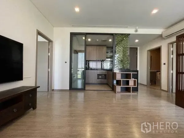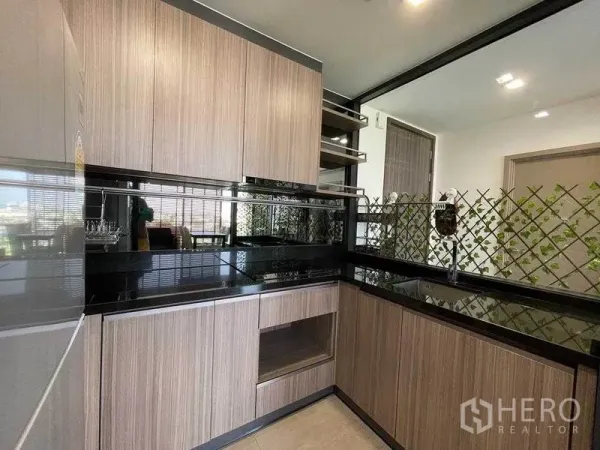 คอนโด 2 ห้องนอน 2 ห้องน้ำ ที่ Mori Haus พื้นที่ใช้สอย 68 ตร.ม. ออกแบบลงตัวในเขตวัฒนา กรุงเทพฯ พื้นที่นั่งเล่นและรับประทานอาหารแบบโอเพ่นแพลน เชื่อมสู่ระเบียงส่วนตัวมุมมองสวนร่มรื่น ครัวบิลท์อินพร้อมเตาและเครื่องดูดควัน ห้องนอนขนาดกำลังดีพร้อมตู้เสื้อผ้าบิลท์อิน ห้องน้ำดีไซน์โมเดิร์นพร้อมตู้กระจกอาบน้ำ
