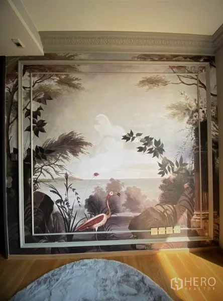 คอนโด 1 ห้องนอน 1 ห้องน้ำ พื้นที่ใช้สอย 57 ตร.ม. ในย่านสุขุมวิท เขตคลองเตย โดดเด่นด้วยดีไซน์หรูหรา ผนังบัวคลาสสิก โคมไฟคริสตัล และโซฟานุ่มเชื่อมต่อมุมกระจกปิดเหมาะสำหรับจิบกาแฟยามเช้า หน้าต่างเต็มบานรับแสงธรรมชาติ พื้นไม้โทนอุ่น และวอลล์เปเปอร์คุมโทนให้บรรยากาศอบอุ่น ห้องนอนมีโต๊ะทำงาน ตู้บิวท์อิน และวิวเมืองกว้าง ห้องน้ำหินอ่อนสีดำ แยกโซนอาบน้ำกระจกและอ่างอาบน้ำให้ผ่อนคลาย