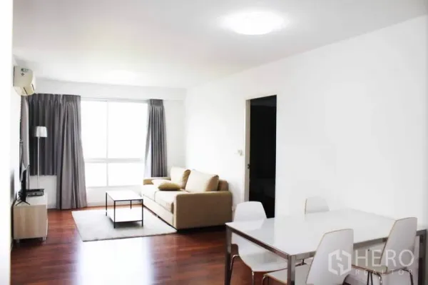 คอนโด 1 ห้องนอน 1 ห้องน้ำ พื้นที่ใช้สอย 53 ตร.ม. ในย่านวัฒนา เดินทางสะดวกจาก BTS ทองหล่อ โดดเด่นด้วยพื้นที่รับแขกและรับประทานอาหารแบบโอเพ่น พร้อมหน้าต่างบานใหญ่ พื้นไม้ และระเบียงส่วนตัวชมวิวเมือง ครัวบิลด์อินพร้อมเตาและเครื่องดูดควันใช้งานง่าย ห้องน้ำสมัยใหม่มีตู้กระจกอาบน้ำ สิ่งอำนวยความสะดวกภายในโครงการครบครัน ทั้งสระว่ายน้ำ ฟิตเนส ล็อบบี้ ระบบรักษาความปลอดภัย 24 ชม. และที่จอดรถ
