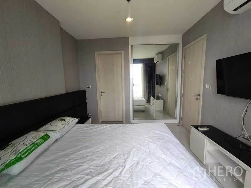 คอนโด 1 ห้องนอน 1 ห้องน้ำ ขนาดใช้สอย 45 ตร.ม. ในย่านพระโขนง คลองเตย กรุงเทพฯ พื้นที่นั่งเล่นและรับประทานอาหารแบบโอเพ่นเชื่อมต่อครัวขนาดกะทัดรัด ห้องนอนมีตู้บิลท์อินให้พื้นที่เก็บของเป็นสัดส่วน ห้องน้ำตกแต่งเรียบร้อย และมีระเบียงรับลม เหมาะสำหรับคนทำงานหรือคู่รักที่ต้องการความสะดวกสบายในการใช้ชีวิตในเมือง