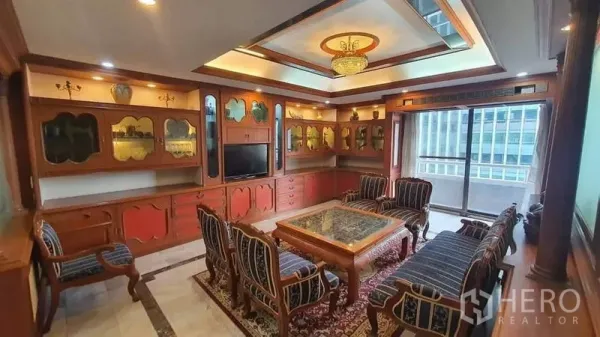 คอนโด 3 ห้องนอน 3 ห้องน้ำ พื้นที่ใช้สอย 180 ตร.ม. ใจกลางวัฒนา โซนรับแขกและทานอาหารแบบเปิดโล่ง ปูพื้นไม้ โทนสีอบอุ่น พร้อมแอร์ฝังฝ้าและหน้าต่างบานกว้างมองเห็นวิวสกายไลน์ ครัวแยกสไตล์โมเดิร์น มีไอส์แลนด์หินแกรนิต เตาแก๊ส เครื่องดูดควันสแตนเลส ผนังกระเบื้องโมเสก และตู้เก็บของจำนวนมาก เหมาะทั้งอยู่อาศัยและสังสรรค์