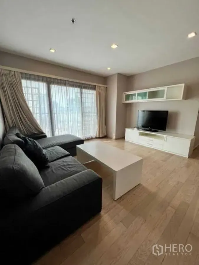 คอนโด 3 ห้องนอน 2 ห้องน้ำ พื้นที่ใช้สอย 102 ตร.ม. ตั้งอยู่ใจกลางเขตคลองเตย เดินถึง BTS พร้อมพงษ์ได้สะดวก โซนรับแขกและรับประทานอาหารแบบเปิดโล่งปูพื้นไม้ เชื่อมต่อระเบียงที่มองเห็นวิวสกายไลน์กว้าง ครัวรูปตัวแอลพร้อมตู้สีขาวและท็อปสีดำ เครื่องใช้สแตนเลส และพื้นที่เก็บของครบ ห้องนอนหลักมีห้องน้ำในตัว ส่วนห้องน้ำอีกหนึ่งห้องมีอ่างอาบน้ำและกระจกบานใหญ่
