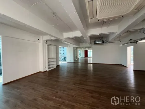 พื้นที่ค้าปลีกขนาด 40 ตร.ม. ทำเลอโศก ใกล้ BTS อโศก และ MRT สุขุมวิท เพียงไม่กี่ก้าว ตัวอาคารมีหน้ากระจกฝ้าทั้งบานพร้อมประตูกระจกบานเลื่อน ชานหน้าร้านปูกระเบื้องและหลังคากันสาด ภายในเป็นโถงโล่งใช้งานง่าย พื้นไม้ลามิเนต ไฟดาวน์ไลท์ แอร์แขวนผนัง และจุดปลั๊กไฟเพียงพอ เหมาะสำหรับบูติก คาเฟ่แบบซื้อกลับ ร้านเสริมสวย หรือสตูดิโอบริการ