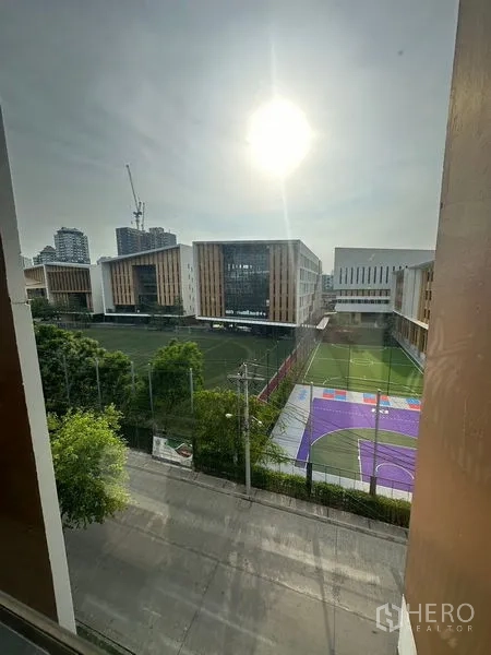 สัมผัสการใช้ชีวิตเมืองในคอนโด 47 ตร.ม. 1 ห้องนอน 1 ห้องน้ำที่ Mori Haus ย่านวัฒนา เดินทางสะดวกเพียงไม่กี่นาทีสู่ BTS อ่อนนุช ห้องนั่งเล่นรับแสงธรรมชาติพร้อมระเบียงมองเห็นสนามกีฬาใกล้เคียง ครัวรูปตัว U หลังบานกระจกมาพร้อมท็อปหิน ไมโครเวฟ ตู้เย็นขนาดใหญ่ และเครื่องซักผ้าในห้องนอนพักผ่อนมีตู้เสื้อผ้าบิวท์อิน ส่วนห้องน้ำมีเรนชาวเวอร์กั้นกระจกและอ่างอาบน้ำแยกสัดส่วน