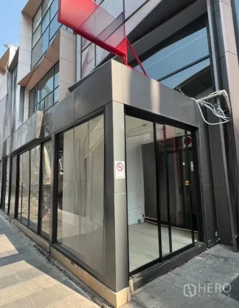 พื้นที่ค้าปลีกขนาดใช้สอย 100 ตร.ม. ตั้งอยู่ย่านสีลม เขตบางรัก เหมาะสำหรับบาร์ คาเฟ่ หรือคอนเซ็ปต์ร้านอาหารขนาดกะทัดรัด ภายในโดดเด่นด้วยพื้นลายก้างปลา โซฟากำมะหยี่ ผนังลายดอกไม้ และแสงไฟบรรยากาศ ฉากโลหะช่วยแบ่งโซนนั่งเป็นส่วนตัว ไฮไลท์คือเคาน์เตอร์บาร์หินอ่อนสีดำกับโครงเพดานสีทองสูง และทางเข้าคลุมต้นไม้เขียวสะดุดตาเรียกลูกค้าได้ดี