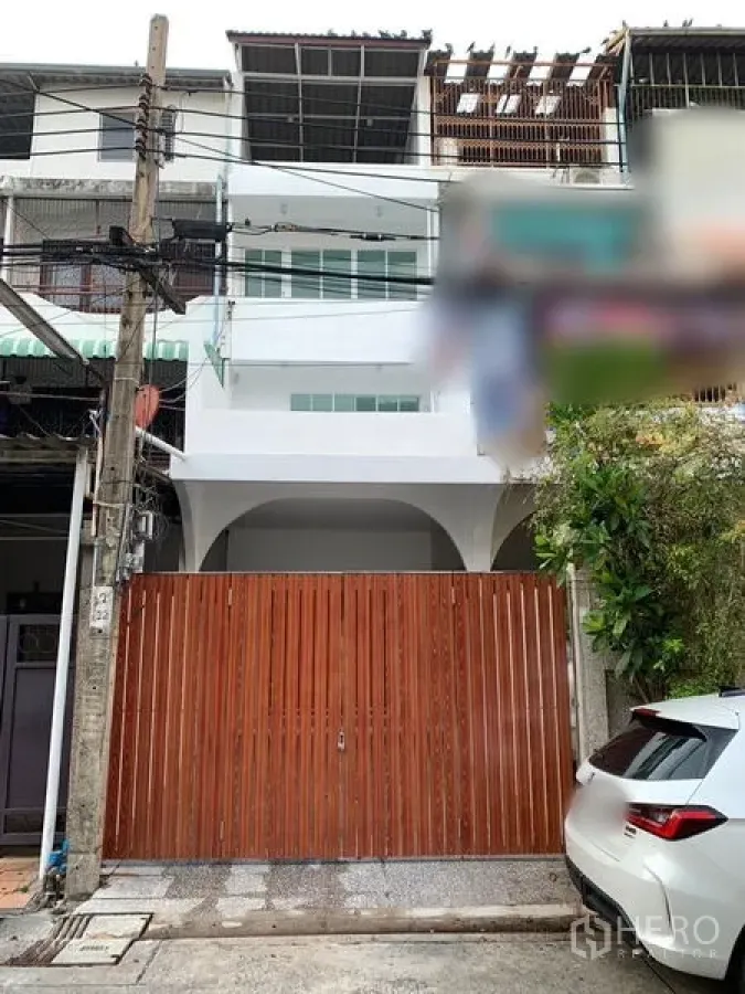 ทาวน์เฮ้าส์รีโนเวทพร้อมขายในยานนาวา กรุงเทพฯ พื้นที่ใช้สอย 200 ตร.ม. บนที่ดิน 24 ตร.วา (ประมาณ 96 ตร.ม. หรือราว 0.06 ไร่) มี 3 ห้องนอน 3 ห้องน้ำ โทนสีขาวสว่าง พื้นกระเบื้องเงางามและไฟดาวน์ไลท์ หน้าต่างบานกว้าง ระเบียงชั้นบน และโถงซุ้มโค้งช่วยเพิ่มแสงธรรมชาติ ห้องน้ำใหม่พร้อมเรนชาวเวอร์และเคาน์เตอร์ลอย หน้าบ้านมีรั้วไม้บานใหญ่ ให้ความปลอดภัยและเป็นส่วนตัว พร้อมที่จอดรถมีหลังคาและลานปูกระเบื้อง