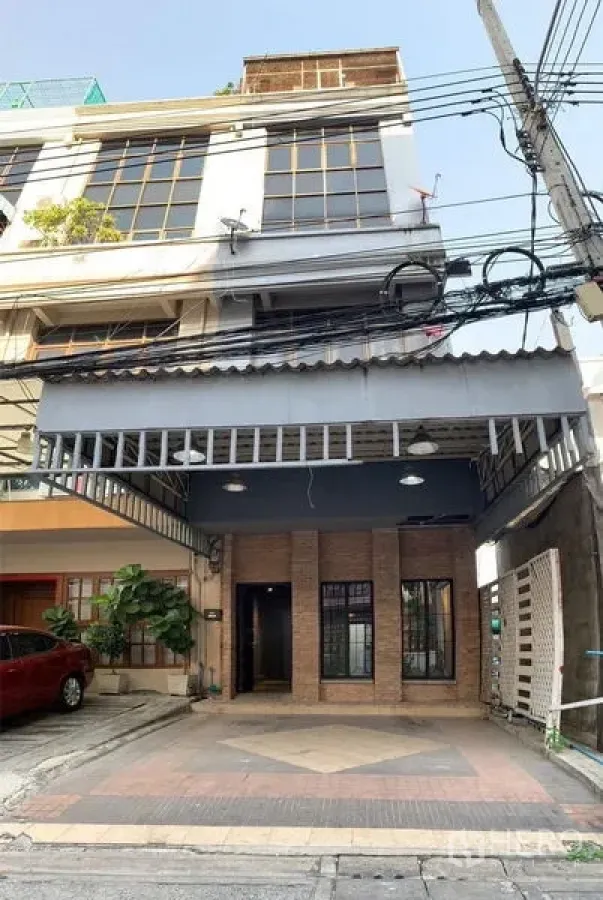 อาคารพาณิชย์ ขายในHuai Khwang, Bangkok - ด้านหน้าอาคารพาณิชย์หลายชั้น มีพื้นที่จอดรถใต้กันสาด