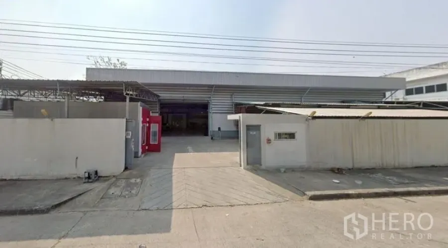 โกดังพร้อมใช้งาน พื้นที่ใช้สอย 1,226 ตร.ม. บนที่ดิน 400 ตร.วา (ประมาณ 1,600 ตร.ม. หรือราว 1 ไร่) โครงหลังคาเหล็กสูงมีช่องลมและรับแสงธรรมชาติ พื้นคอนกรีตโล่งไร้เสา ใช้งานสะดวก ภายในมีห้องออฟฟิศกระจกและห้องปฏิบัติงานหลายจุด รองรับการจัดการสินค้าได้ครบถ้วน ลานคอนกรีตกว้าง มีป้อมยามและประตูม้วนหลายบาน พร้อมลานโหลดและกันสาดรอบอาคารสำหรับขนถ่ายสินค้าได้ทุกสภาพอากาศ