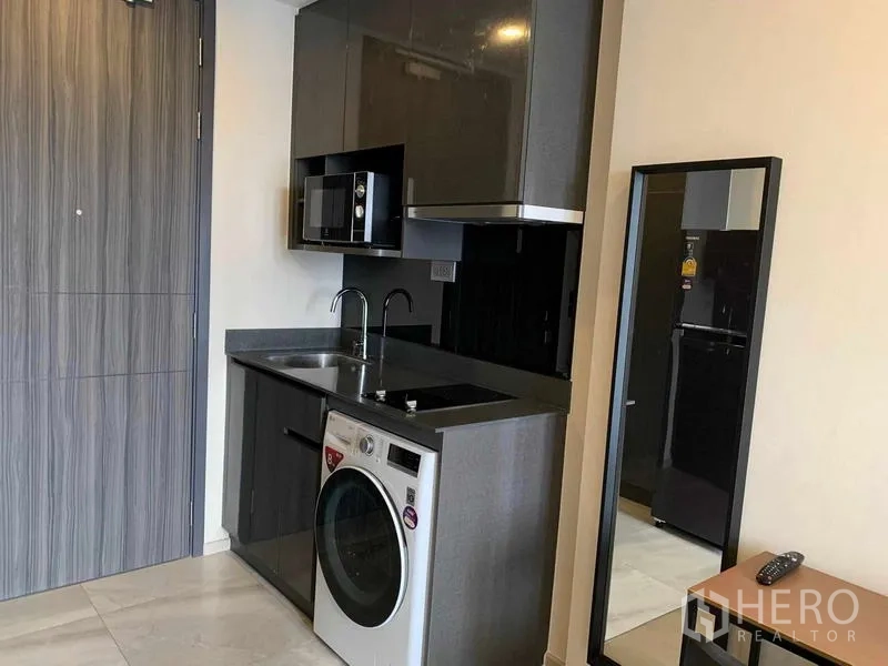 คอนโดขนาด 31 ตร.ม. 1 ห้องนอน 1 ห้องน้ำ ทำเลใกล้จุดตัดรถไฟฟ้าอโศก–สุขุมวิท เดินทางสะดวกทั้ง BTS อโศก และ MRT สุขุมวิท ห้องนั่งเล่นสว่างเชื่อมต่อระเบียงวิวเมือง ห้องนอนมีตู้เสื้อผ้าบิวท์อินและกระจกเต็มบาน ครัวขนาดกะทัดรัดพร้อมเตาไฟฟ้า และห้องน้ำแบบกระจกกั้นอาบน้ำ ลงตัวสำหรับคนทำงานเมืองหรือผู้ลงทุน