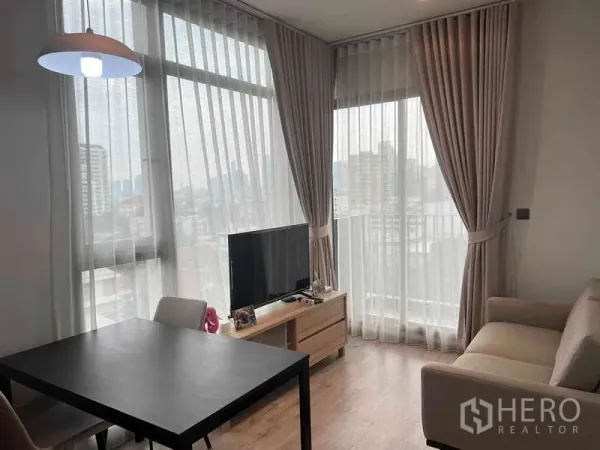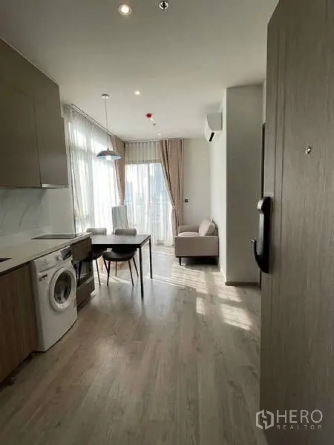 คอนโด 1 ห้องนอน 1 ห้องน้ำ พื้นที่ใช้สอย 40 ตร.ม. ในย่านวัฒนา จัดสรรพื้นที่ลงตัว ห้องนั่งเล่นโปร่งสบายเชื่อมต่อครัวบิลท์อินพร้อมตู้เก็บของและเครื่องใช้พื้นฐาน มีระเบียงส่วนตัวรับลมและวิวเมือง เหมาะสำหรับอยู่อาศัยคนเดียวหรือคู่รักที่ต้องการความสะดวกสบาย