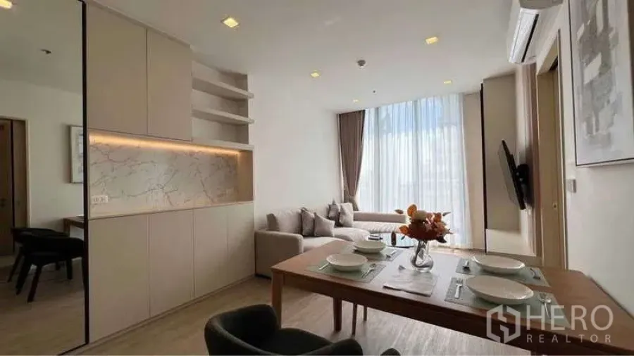 สัมผัสไลฟ์สไตล์โมเดิร์นกับคอนโดให้เช่า 42 ตร.ม. 1 ห้องนอน 1 ห้องน้ำ ที่ Noble State 39 ย่านสุขุมวิท วัฒนา ห้องนั่งเล่นสว่างโปร่งด้วยหน้าต่างสูงจรดเพดาน พร้อมโซฟาเข้ามุม ทีวีติดผนัง และโต๊ะทานอาหารข้างครัวแพนทรี่เก็บของได้จุใจ ห้องนอนให้บรรยากาศผ่อนคลายมีตู้เสื้อผ้าบิลท์อิน ส่วนห้องน้ำดีไซน์หรูมาพร้อมตู้ Shower กระจกและหัวฝักบัวเรนชาวเวอร์