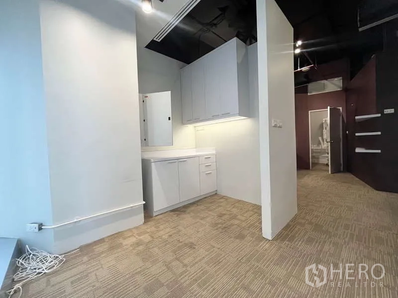 ตั้งธุรกิจของคุณใจกลางเมืองกับพื้นที่สำนักงานให้เช่า 117 ตร.ม. ในเขตวัฒนา ใกล้สถานี BTS พร้อมพงษ์ เพียงไม่กี่นาทีจากสุขุมวิท ภายในเป็นโอเพ่นสเปซรับแสงจากหน้าต่างสูงจรดเพดาน มีโต๊ะทำงานบิลท์อินยาว ไอส์แลนด์สำหรับคอลแลบ ห้องประชุมกระจกพร้อมไวท์บอร์ด และแพนทรีกะทัดรัด เพดานเปลือยและไฟส่องรางให้บรรยากาศโมเดิร์น พร้อมตู้เก็บของมากมาย จัดผังที่นั่งและโซนทีมได้ยืดหยุ่น