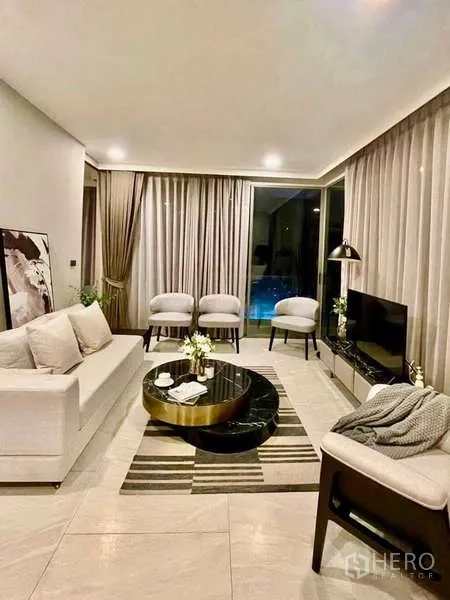 คอนโด 2 ห้องนอน 2 ห้องน้ำ พื้นที่ใช้สอย 80 ตร.ม. ทำเลใจกลางเขตวัฒนา เดินสบายถึง BTS อโศก และ MRT สุขุมวิท ภายในมีห้องนั่งเล่นมุมกว้างโปร่งสบาย ม่านสูงเต็มผนัง โต๊ะกลางหินอ่อนทรงกลม และชั้นวางทีวี ครัวรูปตัว U ทันสมัยด้วยตู้บานเงา แผงกันเปื้อนกระจกสีดำ ท็อปหิน เตาอบบิวท์อิน อ่างล้างจานคู่ และพื้นที่เก็บของเพียงพอ เชื่อมต่อไอส์แลนด์รับประทานอาหาร ห้องนอนปูพื้นไม้ อบอุ่นน่านอน ห้องนอนหลักมีมุมทำงานและตู้บิวท์อิน ส่วนห้องน้ำติดตั้งตู้กระจกอาบน้ำ กระเบื้องลายหินอ่อน และเคาน์เตอร์ลอย