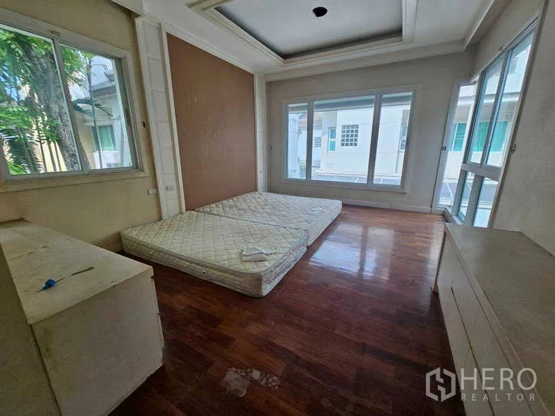 ทาวน์เฮ้าส์ 5 ห้องนอน 5 ห้องน้ำ ในเขตบึงกุ่ม กรุงเทพฯ พื้นที่ใช้สอย 300 ตร.ม. บนที่ดิน 81 ตารางวา (ประมาณ 324 ตร.ม. หรือ ~0.20 ไร่) เหมาะสำหรับครอบครัวใหญ่หรือโฮมออฟฟิศ จัดผังหลายชั้น โปร่งสบาย พื้นที่นั่งเล่นและรับประทานอาหารสว่าง ห้องครัวบิวท์อิน ห้องนอนหลายห้องพร้อมห้องน้ำในตัว พื้นที่เก็บของ ระเบียง และที่จอดรถมีหลังคา